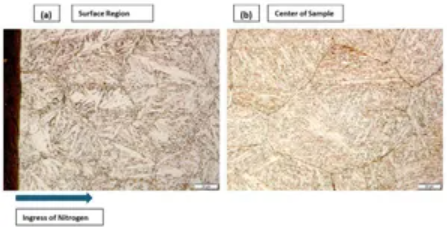 Various in-situ methods can track real-time heat treatment response in bulk materials. This can aid material engineers in designing the most effective heat treatment procedures and processing methods. In-situ methods such as thermogravimetry (TG), differential thermal analysis (DTA), and dilatometry, offer capabilities to examine heat treatment behavior in real time, giving insight into the thermochemical mechanisms and the thermal behavior of steel. This contribution specifically addresses different martensitic (stainless) steel where in-situ control during heat treatment and detailed understanding of their microstructure can pave the way for new applications. The examples presented are 1) heat treatment behavior of different classes of high carbon martensitic (stainless) steel powder for additive manufacturing application, i.e., stainless 440C, cold-work D2, hot work H13, and high speed steel (HSS) T15, 2) nitrogen alloying of wrought martensitic stainless steel AISI 420, and 3) heat treatment response of additively manufactured and conventional precipitation hardening maraging stainless steel 17-4PH. This work is not an in-depth treatise of these individual topics but is intended to show the importance of in-situ techniques for development of new materials (solutions). The individual topics are briefly introduced in the following. High Carbon Steel Powders for Additive Manufacturing Additive manufacturing (AM) is gaining popularity and experiencing rapid technological advancements. Recently, there has been a significant focus on the application of high-carbon steels (Ref. 1). AM methods, such as laser powder bed fusion (LPBF), binder jetting (BJ), and spray forming, offer several benefits, including the attainment of uniform microstructures which offer superior mechanical properties compared to conventionally manufactured metals. Currently, several specialized high-carbon powders are now commercially available for AM. For a successful adoption of high carbon steels for AM, more knowledge on the fundamental thermal behavior related to the processing is needed. To this end, powders and in-situ techniques are an excellent foundation for investigating heat-treating characteristics. 440C stainless steel (440C) is a high-carbon martensitic stainless steel known for its high hardness, wear resistance, and moderate corrosion resistance. According to Bang et al. (Ref. 2), LPBF addresses the limited industrial applications caused by 440C’s high hardness and low workability, while also improving overall mechanical properties such as ultimate tensile strength (UTS) and yield strength (YS) (Refs. 4,5). D2 cold-work steel (D2) is distinguished by its superior hardness, high strength, and excellent wear resistance, making it widely used in industrial applications like cutting and punching tools, as well as dies. This material is well-suited for AM techniques, particularly direct energy deposition (DED) (Ref. 5). H13 hot-work tool steel (H13), typically utilized in a quenched and tempered state, features a martensitic matrix with dispersed fine secondary carbides. Known for its high hardness and fracture toughness, H13 also offers excellent wear and erosion resistance, along with relatively high resistance to thermal shock and thermal fatigue. As noted by Park et al. (Ref. 5), metal deposited via the DED process exhibits different properties compared to wrought metal due to the rapid solidification rate and the high thermal gradient between the deposited metal and the substrate. The microstructure of deposited D2 and H13 has been shown to be highly uniform, with the hardness of deposited D2 comparable to conventional martensitic high-carbon stainless steel, and the hardness of deposited H13 exceeding that of wrought H13. T15 high-speed steel (T15) is well known for its high hardness and excellent wear resistance at elevated temperatures, attributed to its significant carbon and tungsten content, making it an ideal material for cutting tools, drills, blades, and knives. According to Zhang et al. the spray-formed T15 steel exhibits higher hardness, significantly enhancing its overall mechanical properties (Ref. 6). This increase in hardness is a crucial factor contributing to the superior mechanical performance of T15 steel in various applications (Refs. 8–11).