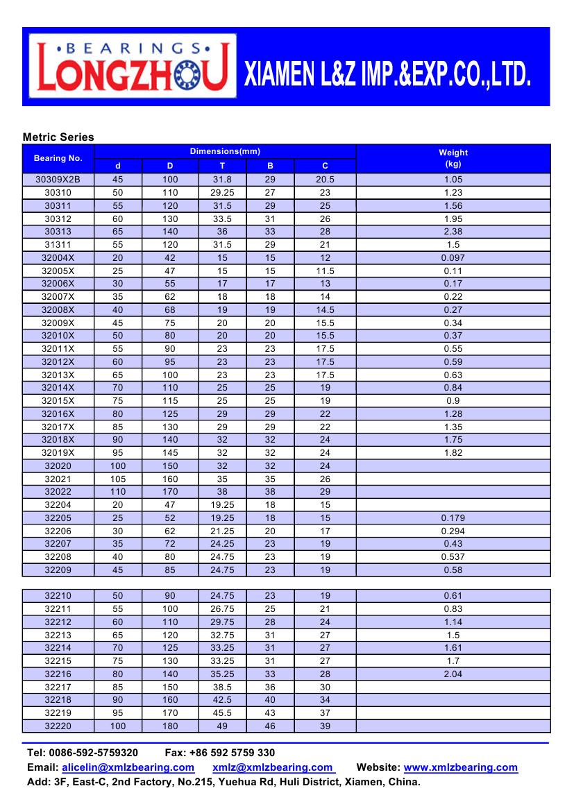 XMLZ BEARINGS COMPANY is a leading worldwide Bearings, Auto Parts, Power Transmission supplier specializing in the marketing of 2 our own registered brand EFG and LZ.Supporting by our Own factories, Joint Venture factories and our Strategic Partnership factories, we are able to provide a wide and comprehensive range of these 3 main product types. Our core advantages, which consist of our engineering and RD facilities, our strategic partnership factories alliances and our strong global distribution and logistics network, provides our customers with Integrity, Professional and Passion skilled staff service. XMLZ BEARINGS COMPANY only produce good quality products. Precision grade tolerance has achieved ABEC-1 and ABEC-3, the noise has achieved Z1, Z2, Z3. All of our customers give us positive comments about our good quality and establish long-term friendly partnership relationship. The raw material range is various Chrome Steel, Stainless Steel, thermoplastic and so on all source from State-owned biggest factory to secure the good quality. Besides, we are good at attractive prices to make our customers happy, Lead time is fast and flexible according to customers need. XMLZ BEARINGS COMPANY has global distribution cover 6 continents after 10 years growth. Germany, Italy, Spain, Greece, Austria, Poland, Bulgaria, Norway, Belgium, France, Romania in Europe, U.A.E in Middle East, Singapore, Indonesia, Malaysia, Thailand, India, Pakistan, Bangladesh in Asia, Australia, New Zealand in Oceania , Egypt in Africa, U.S.A. in North America, Bolivia, Peru, Brazil, Chile in South America and so on Annual Output: 300 containers for all products range!!! Good foundations bring future success. XMLZ BEARINGS COMPANY will run the true to form the fundamental value of offering overall consumer service and more better quality, reliable products, we will bring you very good cooperation experience. Sincerely welcome all circles to visit us and give instructions for the cooperation and development to win-win. |