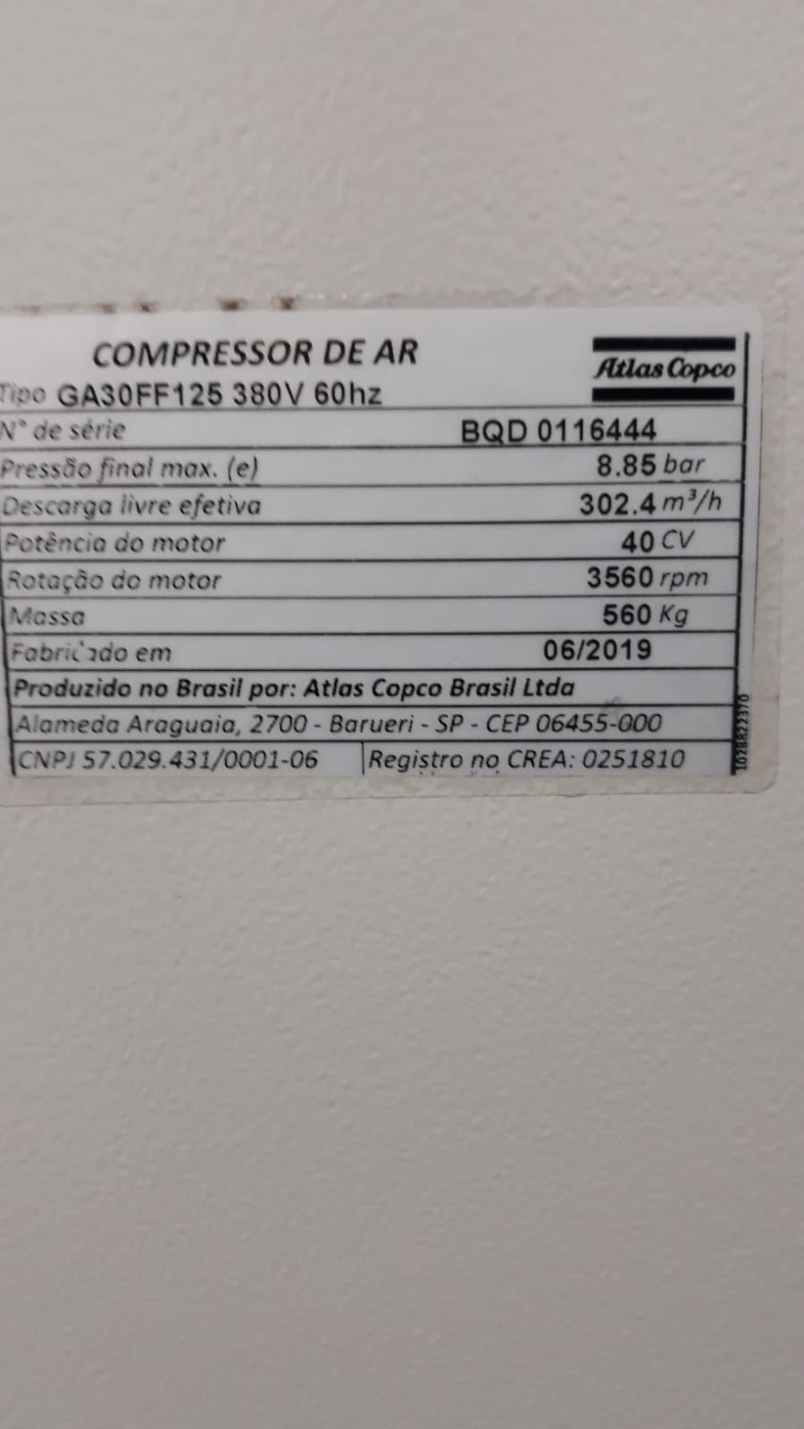 Preciso montar na unidade de compressor atlas copco