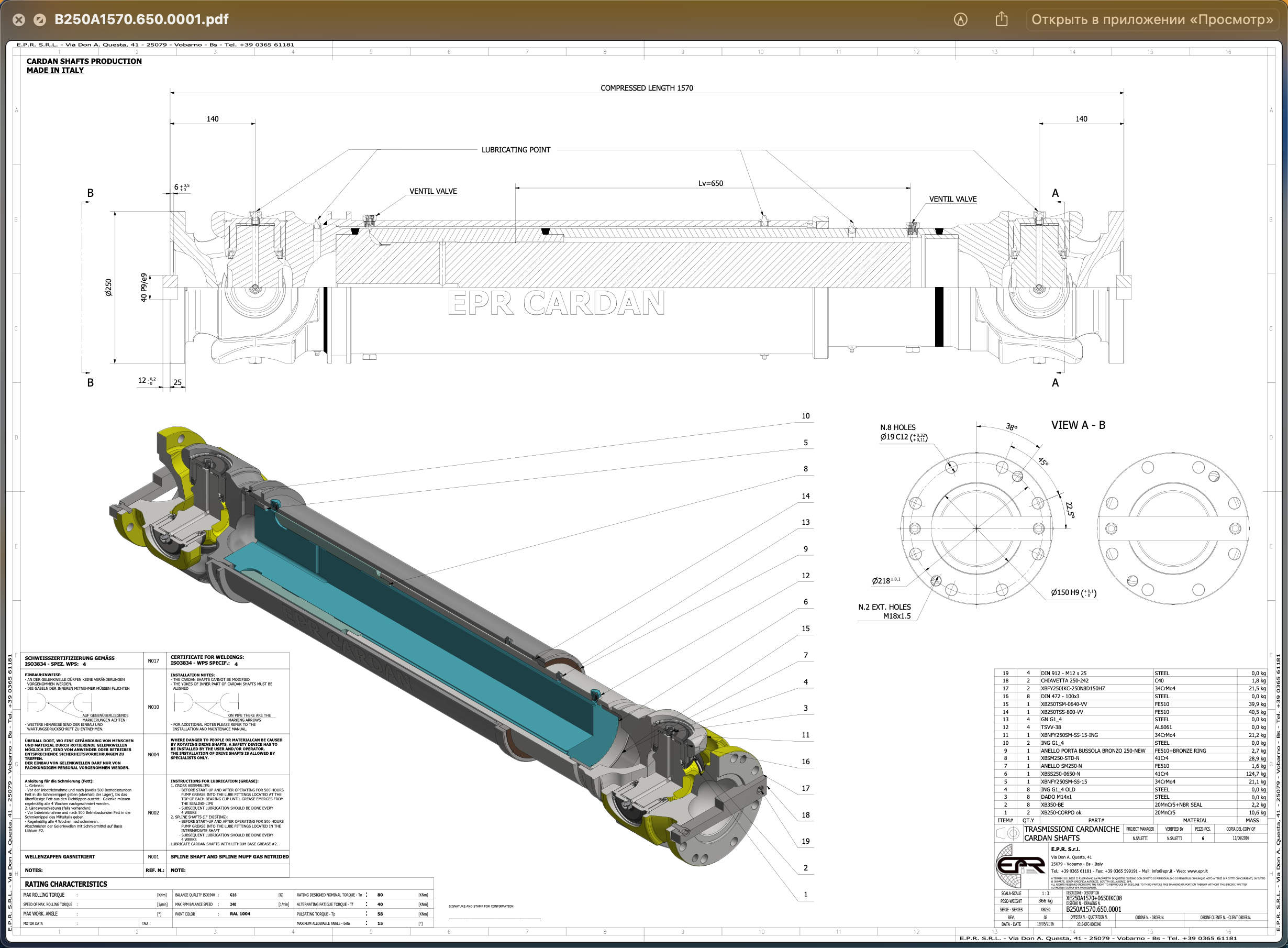 Red cardan joint, universal joint cardan shaft for rolling mill stand 1570mm*Ф250mm