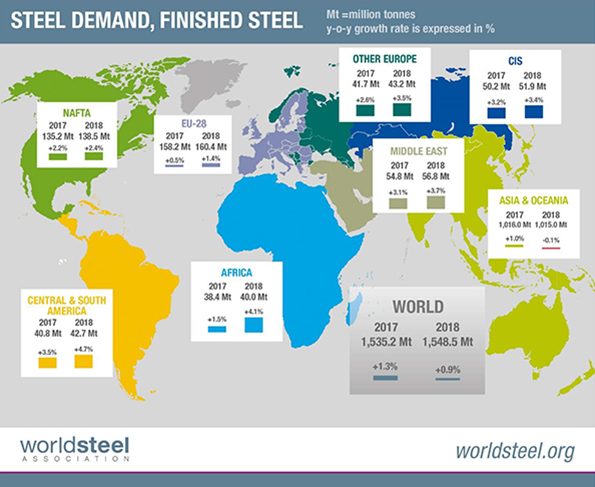 Steel demand in the emerging and developing economies (excluding China) is expected to grow by 4.0% in 2017, and then by 4.9% in 2018.