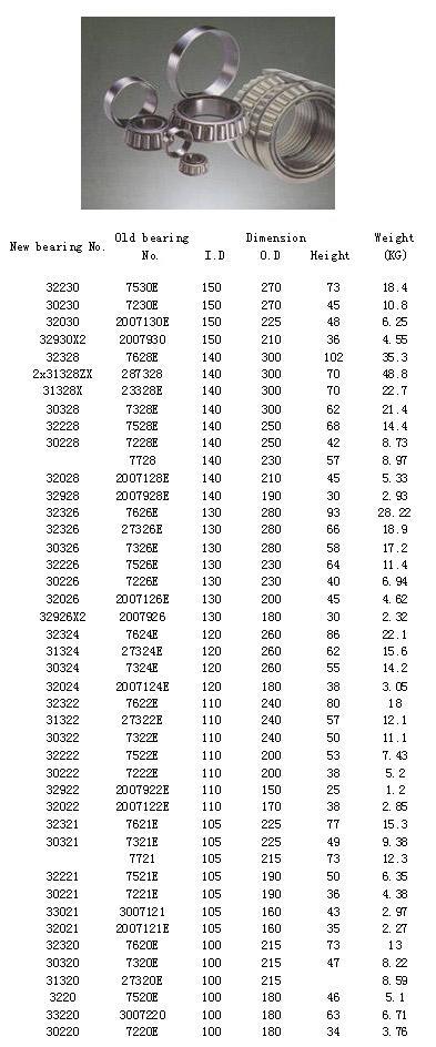 Number: 32952 32248 32048X 32948X2 30244 32044 32044X2 32944X2 32240 30240 32040 32040X2 32238 30238 31038X2 32038X2 320385 32938 32336 31336X2 30336 32236 30236 32036 32036X2 32334 30334 32234 30234 32034X2 32934X2 31332X2 32332 30332 30232 32032 32032X2