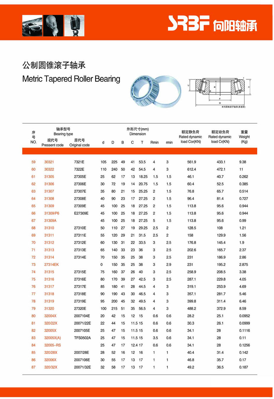 Number: 30321 | 30322 | 31305 | 31306 | 31307 | 31308 | 31309 | 31309/P6 | 31309A | 31310 | 31311 | 31312 | 31313 | 31314 | 27314EK | 31315 | 31316 | 31317 | 31318 | 31319 | 31320 | 32004X | 320/22X | 32005X | 32005X(A) | 32005-RS | 320/28X | 32006X | 320/32X | 7321E | 7322E | 27305E | 27306E | 27307E | 27308E | 27309E | E27309E | 27310E | 27311E | 27312E | 27313E | 27314E | 27315E | 27316E | 27317E | 27318E | 27319E | 27320E | 2007104E | 20071/22E | 2007105E | TFS0502A | 2007/28E | 2007106E | 20071/32E |