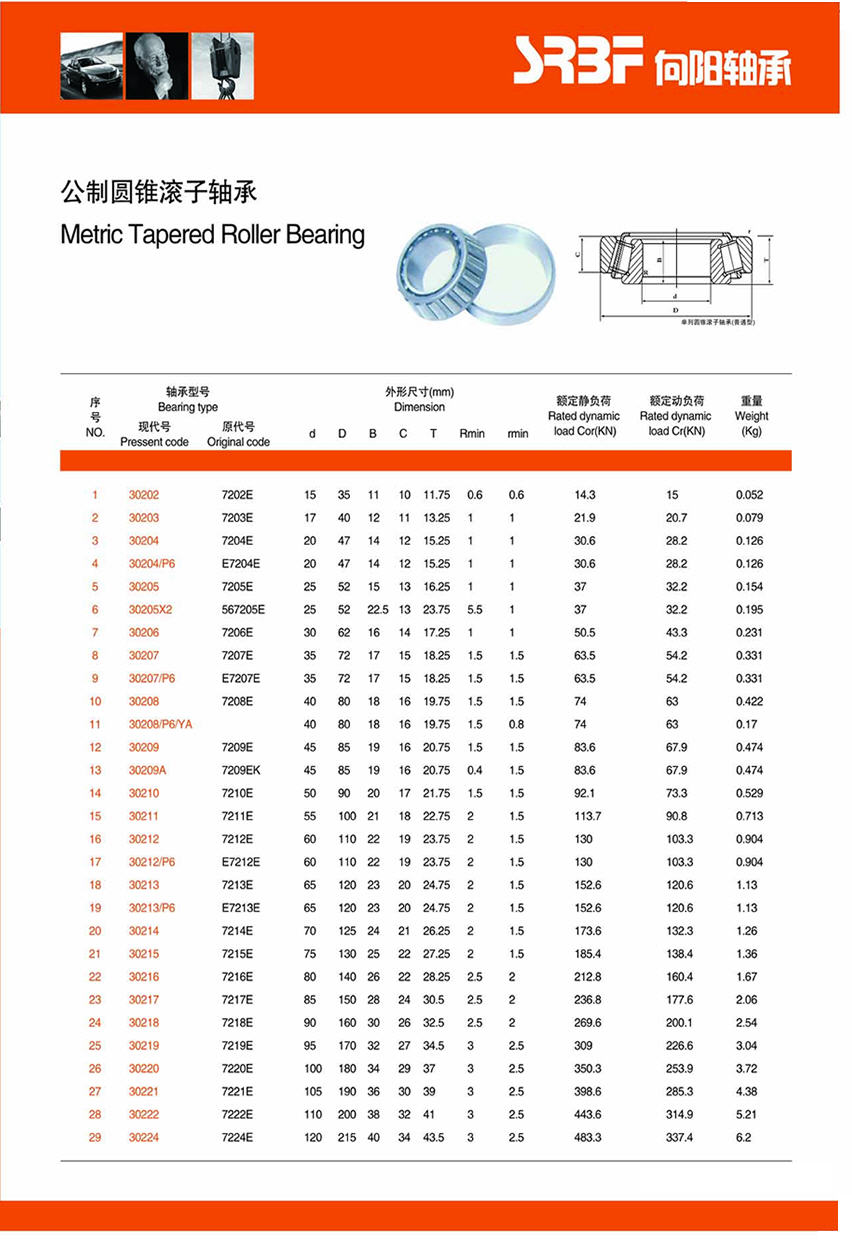 Number: 30202 | 30203 | 30204 | 30204/P6 | 30205 | 30205X2 | 30206 | 30207 | 30207/P6 | 30208 | 30208/P6/YA | 30209 | 30209A | 30210 | 30211 | 30212 | 30212/P6 | 30213 | 30213/P6 | 30214 | 30215 | 30216 | 30217 | 30218 | 30219 | 30220 | 30221 | 30222 | 30224 | 7202E | 7203E | 7204E | E7204E | 7205E | 567205E | 7206E | 7207E | E7207E | 7208E | 7209E | 7209EK | 7210E | 7211E | 7212E | E7212E | 7213E | E7213E | 7214E | 7215E | 7216E | 7217E | 7218E | 7219E | 7220E | 7221E | 7222E | 7224E |