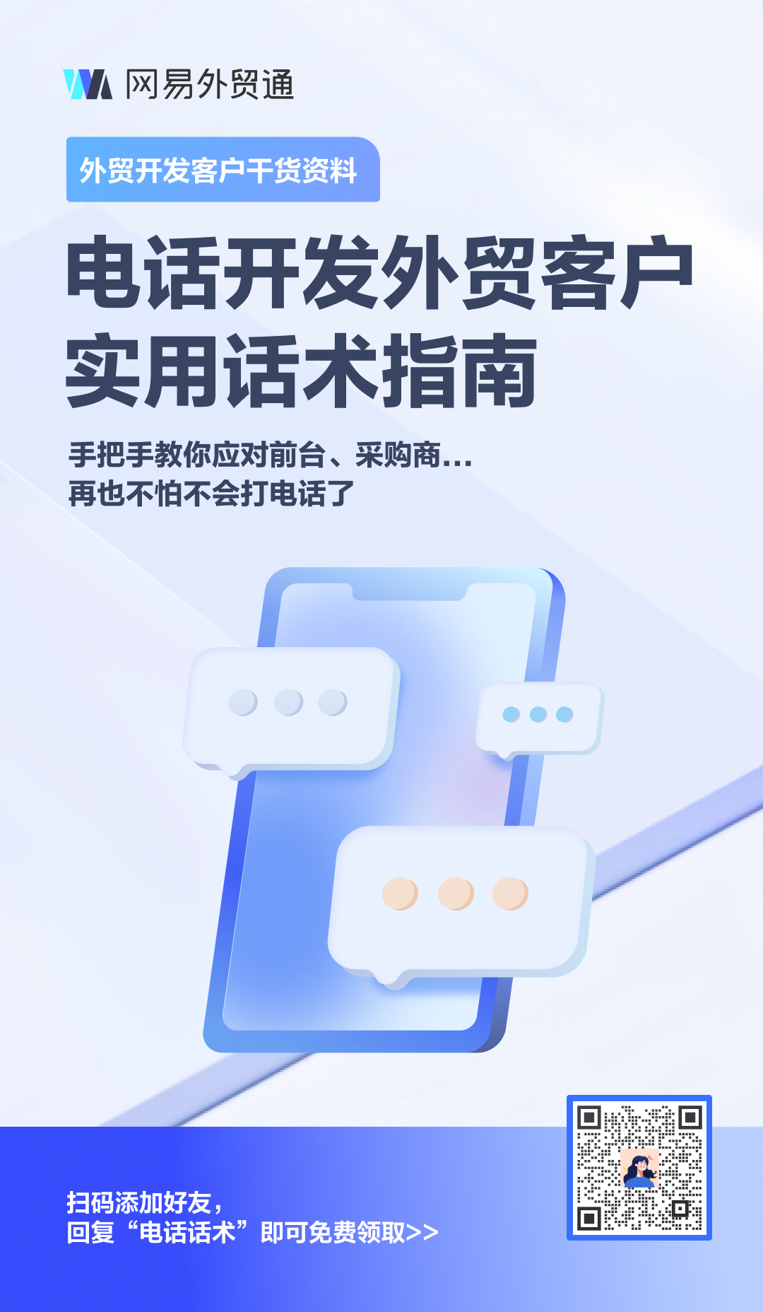 「电话+外贸开发信+社交媒体」是外贸开发客户效果最好也是效率最高的三个方式,在过往我们为大家介绍了很多关于如何写开发信以及社交媒体开发客户的方法。今天就为大家带来最直接“杀伤力”最强的方法——电话开发客户。一通电话的效果远远好过邮件漫长的你来我往。为了帮助大家更好的学习电话开发客户,我们整理了一份《外贸客户电话开发指南》,手把手教你如何打电话应对前台和采购商,快来领取吧!