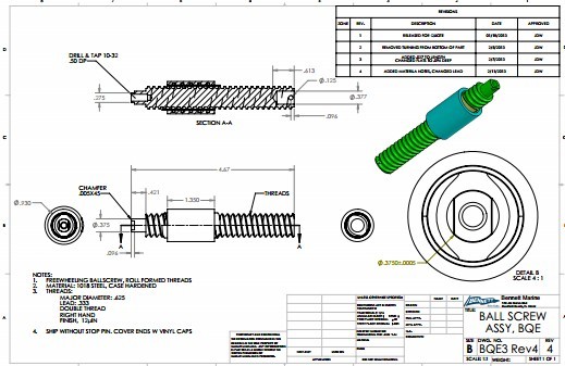 Demand ball screw[Myanmar] We need a free-wheeling ball screw for our product. Please kindly see the attachment. Is there any unusual dimensions or tolerances in the drawing? If yes, please let us know. If you have suggestions for substitute materials for improved performance, please let us know. We’d like a quote on the complete assembly as well as ball screw stock and the ball nut separately. Also, we’d like lead times for delivery. Are you able to provide samples of a similar design for our inspection? Our first year anticipated usage is 2,500 - 4,000.