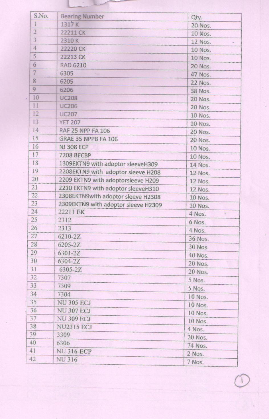 Dear Sir:Appreciate your best FOB prices on the attached bearing list.Best Regards, FOB QUOTE P/N QTY 1 UCP-204-12 200 2 UCF-205 200 3 UCF-205-16 200 4 UCP-205-16 200 5 UCP-207-20 300 6 UCP-208-24 200 7 608-2RS 200 8 609-2Z 300 9 6001-2RS 200 10 6002-2RS 200 11 6003-2RS 200 12 6006-2RS 200 13 6201-2RS 200 14 6202-2RS 200 15 6203-2RS 2000 16 6204-2RS 200 17 6205-2RS 500 18 6206-2RS 500 19 6301-2RS 200 20 6302-2RS 2000 21 6304-2RS 2000 22 6305-2RS 2000 23 6386/20 50 24 220149/10 200 25 32016 50 26 32209 1000 27 32212 1000 28 32214 200 29 32218 50 30 32219 30 31 31313 50 32 31314 20 33 39580/20 80 34 537/532X 50 35 594/592A 50 36 6386/20 50 37 663/653 50 38 683/672 50 39 687/672 50 40 387/382A 50 41 368/362A 40 42 580/572 40 43 594/592A 40 44 JP 10049/10 20 45 HM218248/10 150 46 HM212049/11 100 TOTAL 15870【Peru】