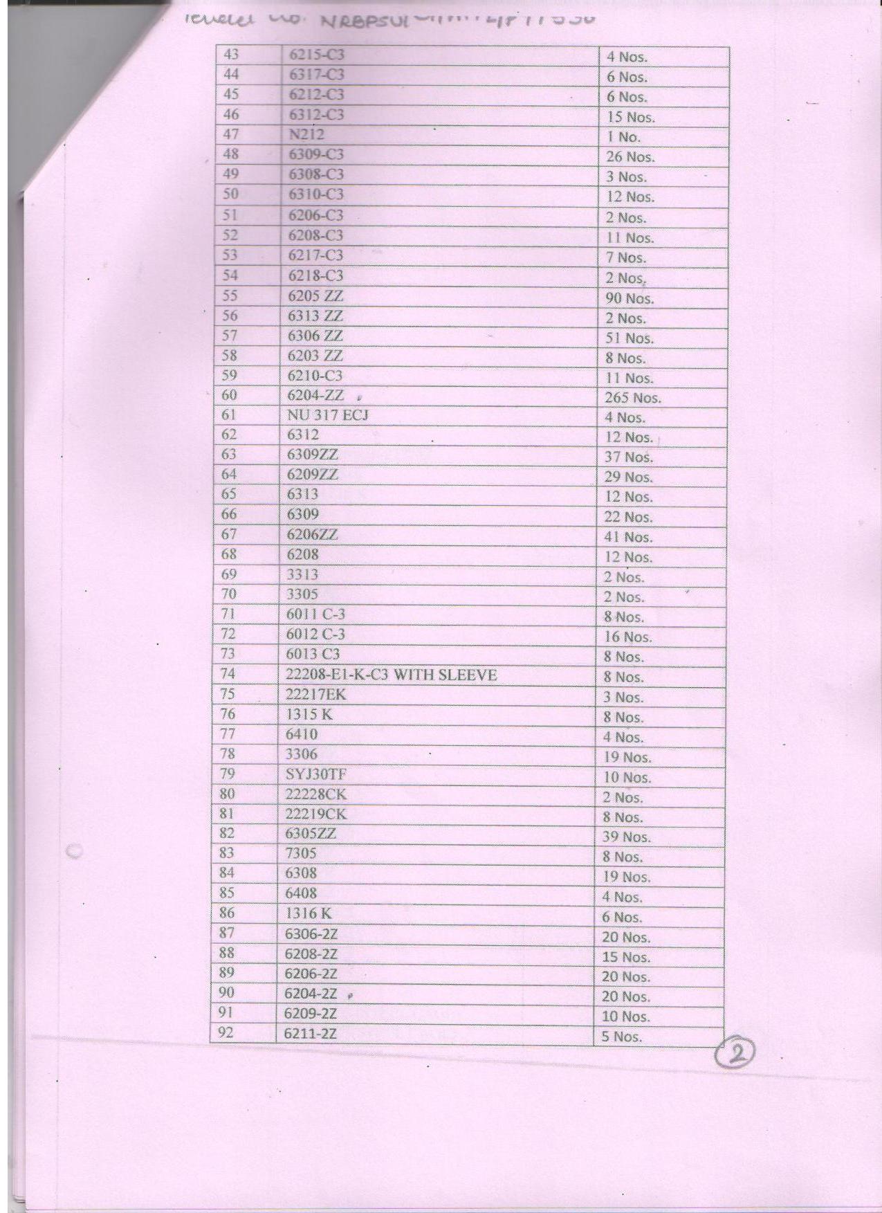 Demand spares[India] Please quote the following spares: MAIN ENGINE EXHAUST GAS TURBOCHARGER MAKER: MITSUBISHI TYPE: MET42SC SP-EC 2 H40 CDSL NO DESCRIPTION PART NO DRAWING NO QTY UNIT 001 ROTOR SHAFT ( COMPLETE) 60 1 PCS 002 GAS SEAL RING 251 1 PCS 003 GAS LABYRINTH PACKING 24 1 PCS 004 GAS LABYRINTH SUPPORT 25 1 PCS 005 OIL LABYRINTH PACKING T/SIDE 35 1 PCS 006 THRUST COLLAR 63 1 PCS 007 OIL LABYRINTH B/SIDE 37 1 PCS 008 THRUST BEARING B/SIDE 73 1 PCS 009 JOURNAL BEARING 70 1 PCS 010 THRUST BEARING T/SIDE 71 1 PCS【India】