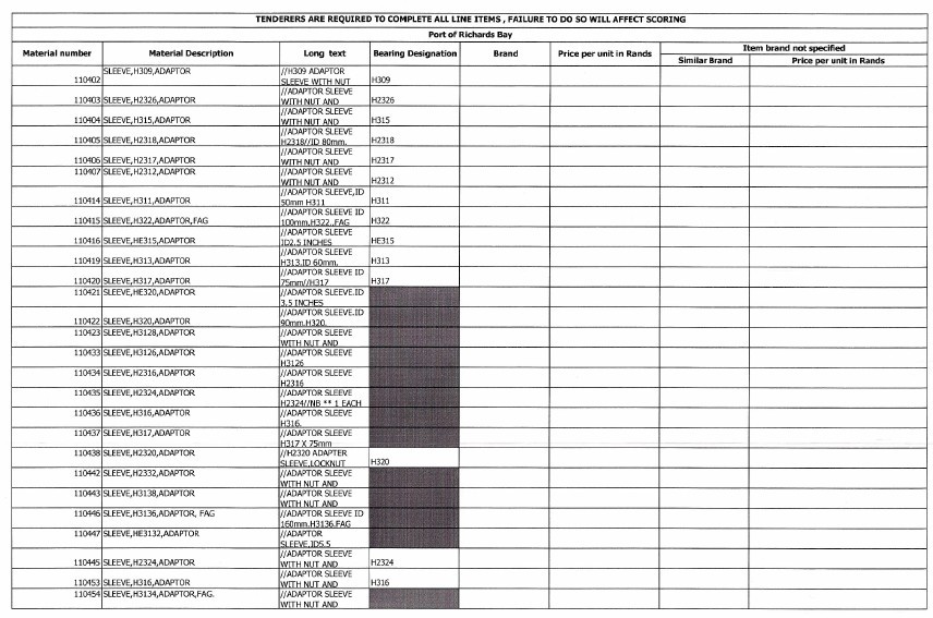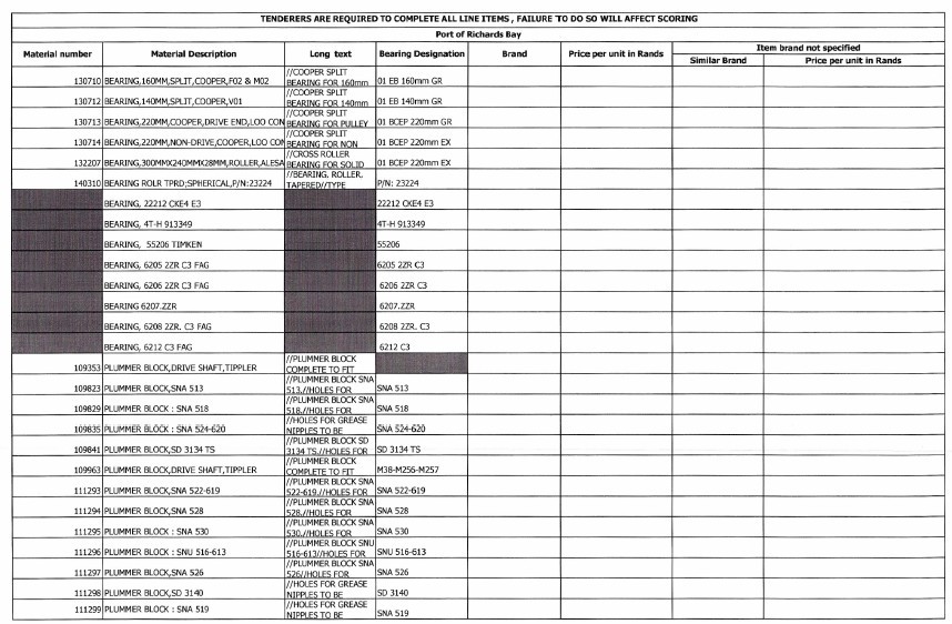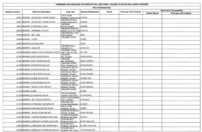 Demand bearings[South Africa] I have attached a big list on my enquiry for bearings for the tender that is closing on the 12th of January 2013. It is very urgent for you to expedite the quoting process as this is very urgent. The quality of the bearings should be in the level of the very known brands like SKF AND/OR FAG. The product should be your own one NOT ANY OTHER KIND.