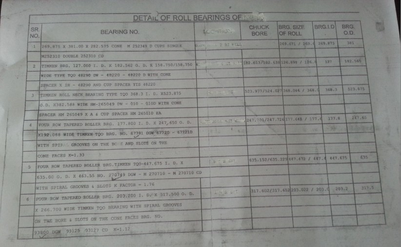 Urgently demand TIMKEN bearing[India] We are forwarding herewith the details of TIMKEN MAKE 4 ROW TAPERED ROLLER BEARINGS being used at our mills. Kindly go thru the details & arrange to send us your Techno Commercial offer accordingly in equivalent available.