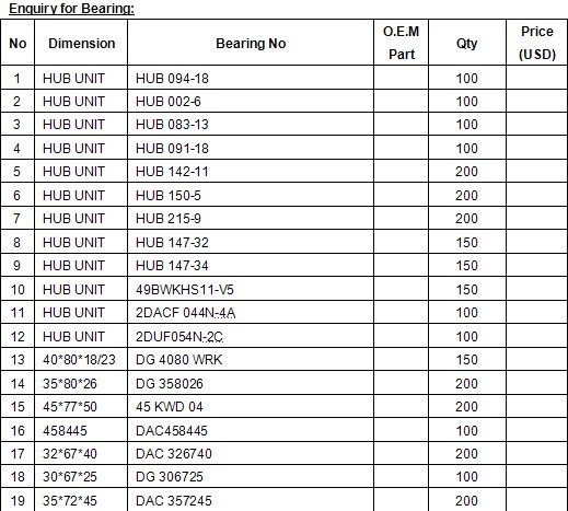 Demand bearings[Malaysia] One of our cusomters is looking for the bearings in the attachment, pls quote your FOB price. Thanks.