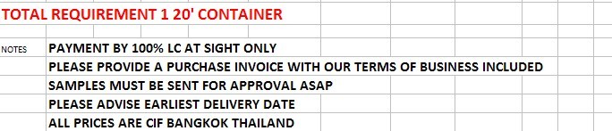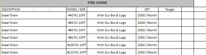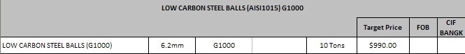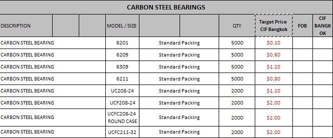 Demand Bearings, chains and steel balls[Thailand] Dear Supplier, We currently have a new requirement for Bearings, chains and steel balls. We need 1 20 foot container. Please see the attached list.Can you please email me with your BEST price CIF Bangkok Due to the large amount of emails we receive we will only reply to suppliers that are within our target price range. Regards