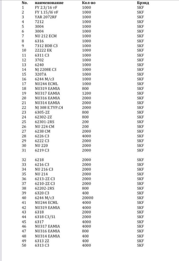 Demand bearings 2416-up to 50 pcs. 12416-up to 20 pcs. 32416-up to 50 pcs. 11208-up to 100 pcs.