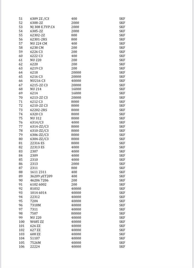 Item Spec. Brand QTY 1 Bearing 6006 Chinese Brand 5000 2 Bearing 6009 Chinese Brand 3500 3 Bearing 6009 Chinese Brand 3500 4 Bearing 6015 Chinese Brand 80 The quotation(s) should include all direct and indirect costs, the approach is: