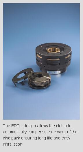 The magnet body of the ERD is typically installed on a motor or gearbox shaft with the option for a hub, coupling, gear, pulley or sprocket mounted to the spider or clutch cup. When current is applied to the coil, magnetic flux flows through the discs to the armature, which causes the outer discs to be squeezed between the inner discs, which transmit torque from the rotor input to the spider output. The magnet body of the ERD is held stationary by the means of an anti-rotation screw or post anchored to a hole provided. Coils are fully encapsulated in epoxy protecting them from the oil and/or harsh environment the clutch may be subjected to and a sealed connector is standard.