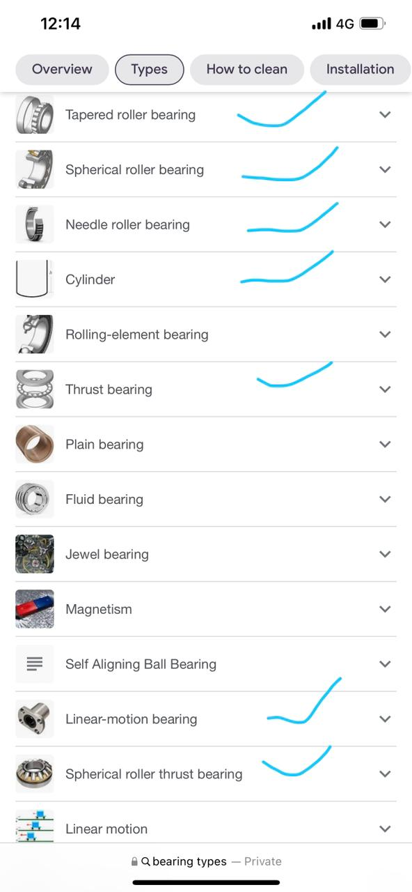 Look for ball bearings and needle bearings