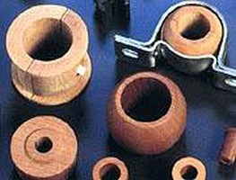 Hardwood bearings with impregnated lubricant could bring solutions to many of your bearing design and maintenance problems. The basic material is a specially selected, close-grained, dried, dense hardwood. The basic wood is impregnated with a blend of fluid lubricants. The material can then be machined into a variety of shapes and sizes for bearings and other wear-reducing components. The finished "wood" bearing is, in fact, up to 40% lubricant by weight.