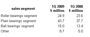 At the current COS run rate, RBC's inventory turns have fallen to just 1.9 (1Q2009 COS at $61.8 million). By way of comparison, Timken is currently running at 3.8 turns, and Kaydon is running at 4.0.