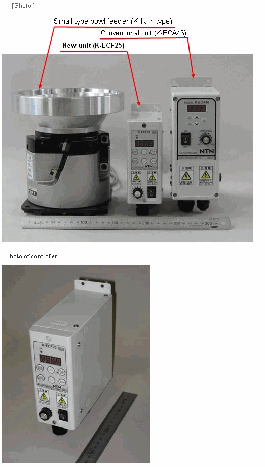 NTN Corporation (hereafter NTN) has developed a ‘small size variable frequency controller’ for the control of small and medium size parts feeders. Sales of the product began in September, 2008.