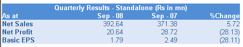 A B C Bearings Net Dips 28.13% for Sep`08 Qtr