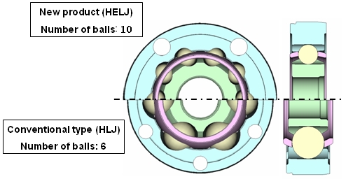 NTN Corporation (hereafter NTN) has developed a ‘High efficiency and low heat generation ten ball constant velocity joint (HELJ)’ for propeller shafts of FR and 4WD vehicles (hereafter ‘constant velocity joint’ is referred to as ‘CVJ’ )