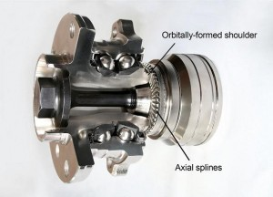The spur-gear teeth are applied onto the orbitally formed shoulder by high-precision cold forming.
