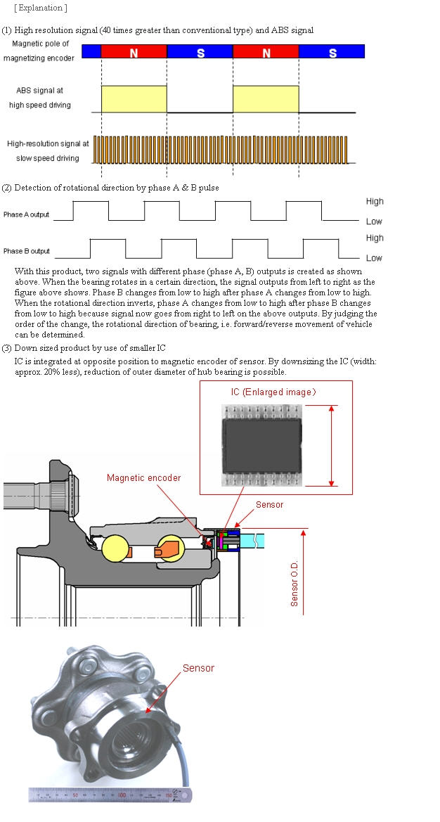 (1) Simultaneous output of high resolution signal (40 times compared with conventional type) and ABS signal (Magnetic encoder is the same as conventional one)