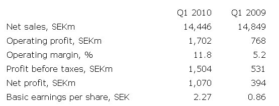 SKF First-quarter report 2010