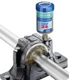 Once set up, the SKF SYSTEM 24 lubricator is fully automatic, eliminating the need for manual lubrication. Each device is constructed from a tough polyamide plastic cartridge, filled with lubricant and hermetically sealed to prevent the ingress of dust or moisture; it is also transparent so that lubricant levels can easily be checked.
