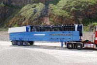 The trommel's main components are a 42-tonne capacity feed hopper equipped with a variable speed reciprocating tray feeder, and a 1.8 m diameter x 9.8 m long screening barrel. The barrel sits on hydraulically-driven support rollers – the main drive pump can be powered by an electric motor or a diesel engine – and its rotational speed can be varied to accommodate different material flow rates. The complete machine sits on support legs or an under-frame, and the desired grade of material is obtained via an extraction hopper placed beneath the appropriate section of the screening barrel.