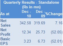 Bimetal Bearings Net Plummets 52.05% for Dec`10 qtr