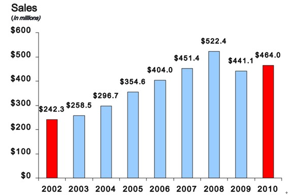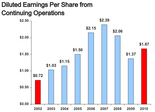 2010 performance reflected meaningful improvement due to improved volume and enhanced operating leverage;