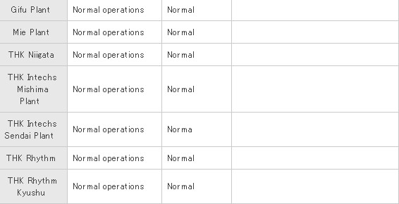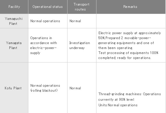Earthquake's Impact on THK Production Division (Updated March 24, 2011, 5:00 p.m.)