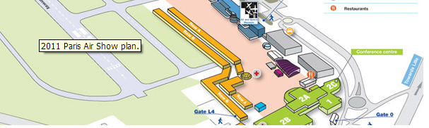 2011 Paris Air Show plan. Image courtesy of Salon International de l'Aeronautique et de l'Espace (SIAE), a subsidiary of GIFAS (the French Aerospace Industries Association).