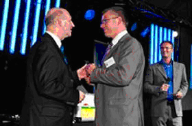 Hans vander Perre, General Manager of SLS Belgium receives the award from Alex De Fauw, OTM board member.