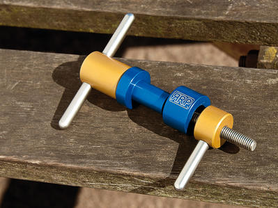 The Bearing Press & Extraction Tool (BPET) looks and feels like a quality bit of engineering with colour-coded parts and instructions (red hardware for extraction, blue for inserting bearings) and a good finish.