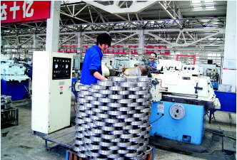 Workers from Tianshui Hailin Bearing Co., Ltd are busy producing bearings.