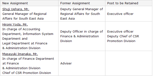 Minebea Notice of Personnel Changes
