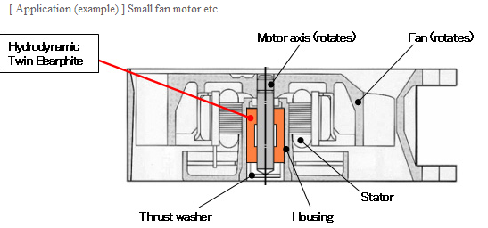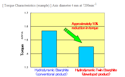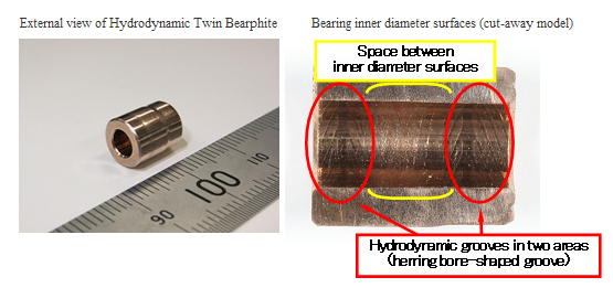 To produce a lower torque version of the hydrodynamic Bearphite used in motors, the Hydrodynamic Twin Bearphite was developed featuring hydrodynamic bearing surfaces in two areas and a uniquely designed space between them.