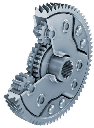 He added that this is because the decision to base the differential on spur, rather than bevel, gears had some significant implications on the choice of processes used to manufacture it. It was possible, for example, for the planetary gears to be pressed, rather than forged, while the housing of the differential could be manufactured from deep-drawn sheet metal parts.