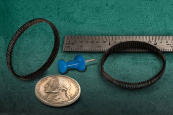 The Kevlar® belts (double span) have a breaking point of 300 N per 1 mm (214 lbf. per 1/8 in.) and the fiberglass belts, also double span, have a breaking point of 165 N per 1 mm (117 lbf. per 1/8 in.). Both have a temperature range of -30°C to +85°C (-22°F to +185°F). Since these timing belts are the smallest standardized pitch timing belts available they are ideal for important prototype or production applications that require high-quality, miniature parts. View additional specifications for the new 1 mm pitch timing belts and their compatible A 6A18M...Series miniature belt pulleys easily online.