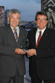 Dr. Bruno J. Scherb, Innovation Management, and Dirk Spindler, Head of Corporate Development accepted the “Best Open Innovator 2011” award on behalf of Schaeffler (from left).