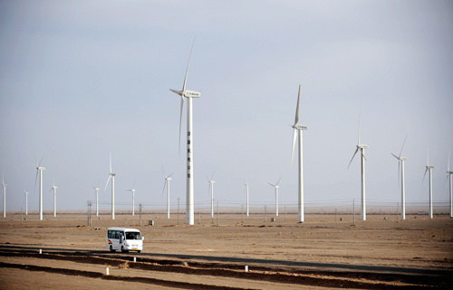 WIND BASE: A wind power plant in Jiuquan, Gansu Province. The city is home to China's first 10-gw wind power project (HAN CHUANHAO)
