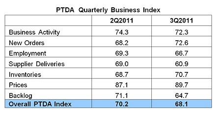 PTDA members participating in the Business Index on average continue forecasting 12 percent growth, the same as from the 2Q outlook. Distributors' sales rose faster in the third quarter than manufacturers' sales.
