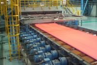 In recent years, Nord Drivesystems has been very active in the steel industry in China and India. Nord has supplied 2,500 geared motors to the Shanghai Baosteel Group Corporation for a heavy plate mill in Pudong which produces, sheets for the ship building industry, amongst others. Roll table drives are essential parts of a steel mill's equipment. They need to be fully reliable, or else entire production lines threaten to stand still, which may result in irreparable damages to the equipment if freshly cast goods stay on the roller tables for too long. The drives must withstand harsh environments, extremely irregular operating modes, heavy loads, and maximum temperatures. Roller drives must deliver high torques. They must be able to instantly reverse the rolling direction and feature variable speed adjustment. This entails high electrical, mechanical, and thermal stress on the drives. In the Pudong rolling mill, steel slabs are rolled into sheets. The slabs freshly cast in a continuous caster are transported into a reheat furnace via roller tables. The furnace spits them out red-hot. They pass through a high-pressure descaler which removes the mill scale. Because of the spray water, the drives in this area provide IP66 protection. Next, after the slabs have been tapped, the pieces are rolled to the required thickness and size. The sheets then pass through an accelerated cooling line to a cooling bed, and to customization. The roller tables for slab transport have rollers mounted with one meter distance between them, each powered by one geared motor. The load torque must be high enough for the motor to stand in for a neighboring machine in case of a breakdown. To ensure that the roller tables do not come to a standstill in any event, five to seven drives per ten rollers must be powerful enough to transport the rolled stock. More than 800 helical gearmotors were installed on the roll tables in the shearing lines which require up to 500 switches per hour and accelerations of up to 3.4 m/s². In addition, Baosteel uses geared motors from Nord in the hot area, for instance in the descaler and as roller drives, but also in the accelerated cooling line. For maximum loads, Nord supplies large industrial gear units which generate torques of up to 1,770,000 lb-in (200,000 Nm) - they are suitable for applications in the cooling bed, on chain conveyors, and on guide rollers.