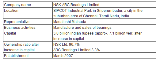 NSK Increases Capital Stake in NSK-ABC Bearings Limited to Further Expand its Bearing Business in India