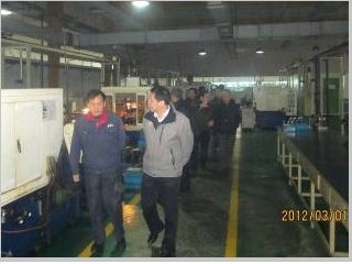 Subsequently, the leaders from CBIA, accompanied by Zhou Gang and Zhang Ping, visited the office building, production workshop and product performance lab etc. Zhou Yu, the deputy decretary general from CBIA spoke highly of the company development strategy, working conditions, workshop environment, quality management, site 6S management etc. and expressed the hope that the company could seize the market and developement opportunities so as to achieve greater development in 2012.