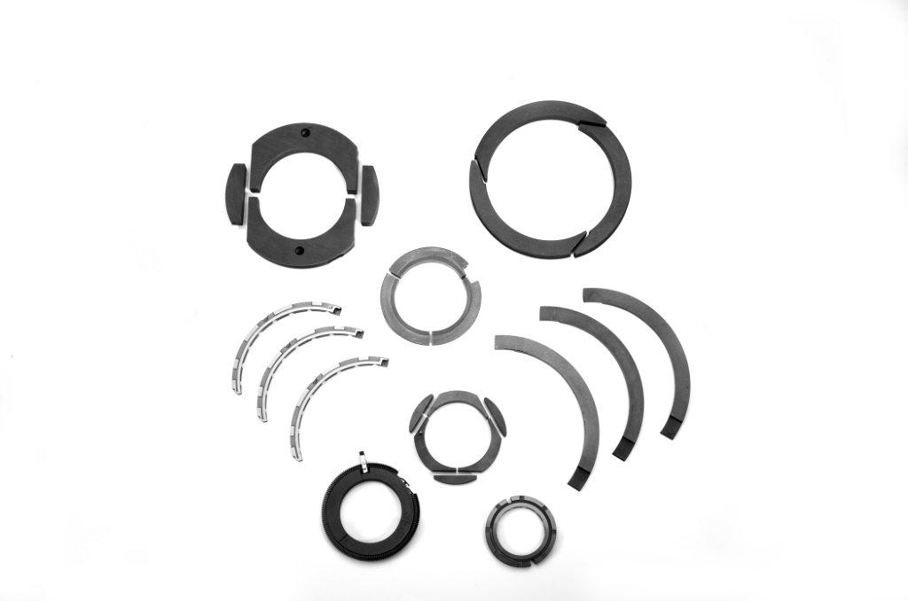 The carbon-graphite radial seal rings are manufactured by Metcar and meet the most stringent customer specifications. More than 150 grades of proprietary carbon/graphite material are available, and Metcar engineers work with customers to select the optimum grade for specific applications, based on the environment, shaft, housing materials, or rotational speed.