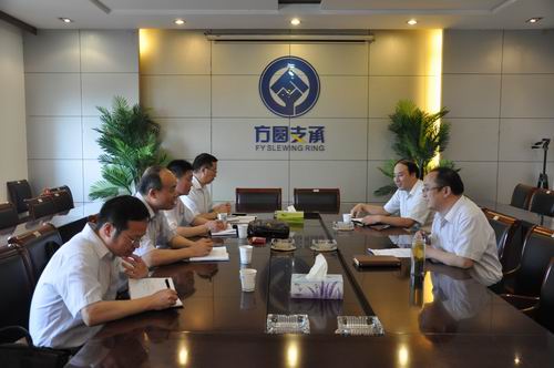 On the morning of May 8, Ni Zhipin, Mayor of Jinjiazhuang District, and his entourage visited Maanshan Fangyuan Slewing Ring Co., Ltd to inquire upon the production operation of the company and problems needed to be solved by the government. Yu Yunni, deputy general manager, and Tong Jianguo, assistant general manager of Maanshan Fangyuan accompanied the guests.