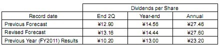 2. Revisions to FY2012 dividend forecasts